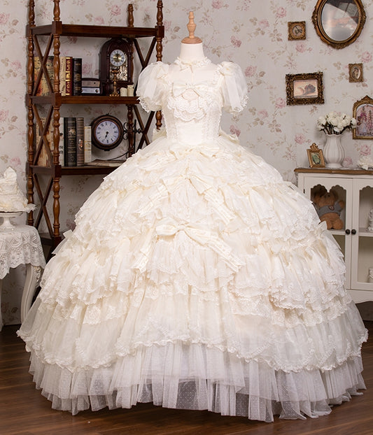 Corset Tiered Dress Lolita Skirt White Creamy Princess