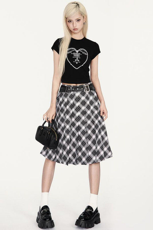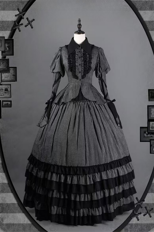 striped shirt Dark + skirt gusset-sleeved corset Reservations