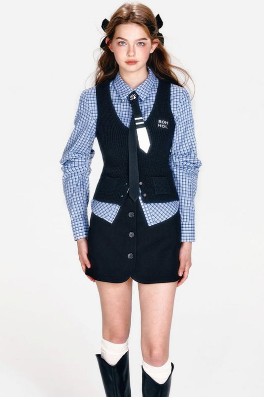 Shirt and Hip Cool Blue Check Skirt Mint Setup