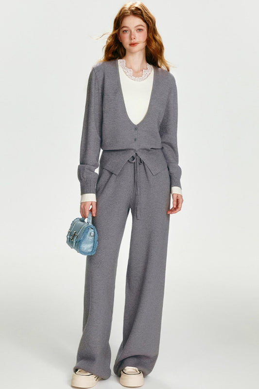 Fit Slim Camisole Elastic / Pencil Skirt Drawstring Top Mini Set Cardigan Waist Melange Crop