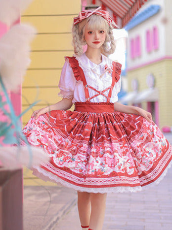 Suspender Dress Set Ear Velvet Tail Hairband Frill Puffy Cat Heart