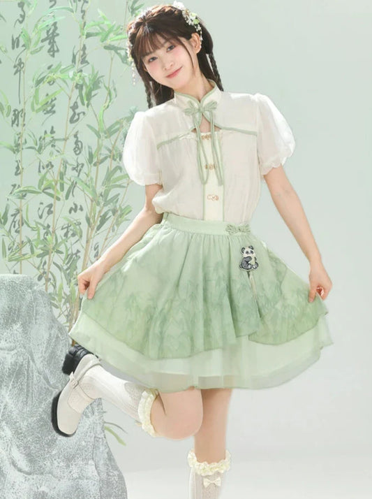 China Shirt-Skirt Sleeve Dress Panda Kung Puff Fu Mint + Chiffon Set