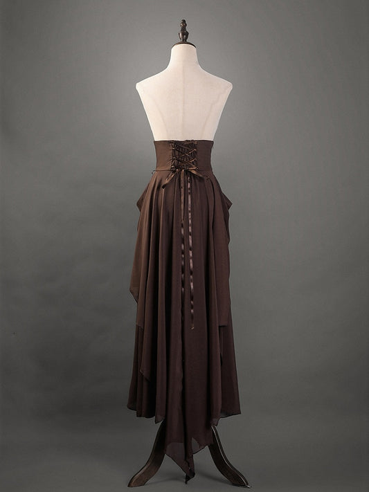 Brown Corset Belt High Waist Steampunk Lolita Drawstring Skirt