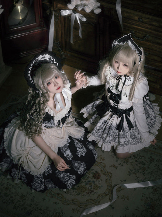 Maid China Black Ribbon Sleeve. Apron and Sleeve and Dress Long Short Set White