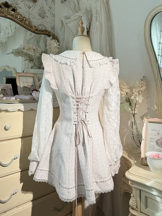 Tweed Set Long-Sleeve Pink Dress Kei Jirai Matching + Lace Fresh Shorts