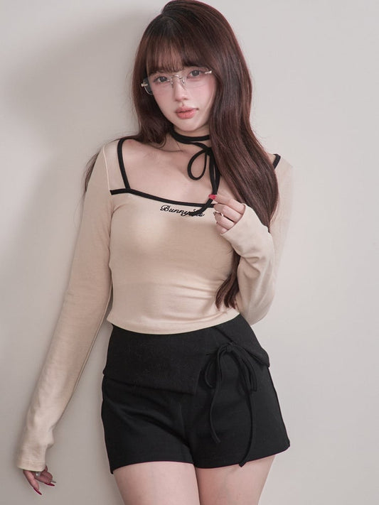 Beige Kei Waist-Cincher Design Jirai Tie Shorts