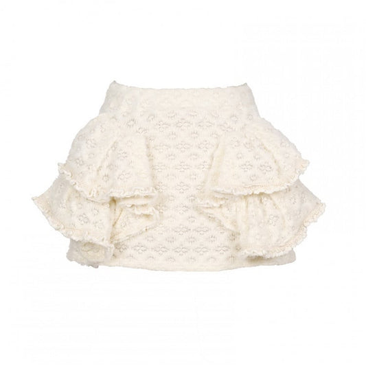 with Built-in Lace White Fuzzy Shorts Mini Knitted Skirt Cream
