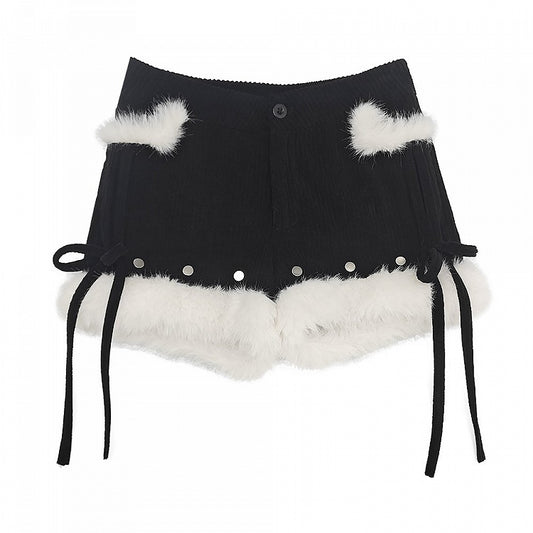 with Drawstring Waist Faux Cream White Fur Shorts