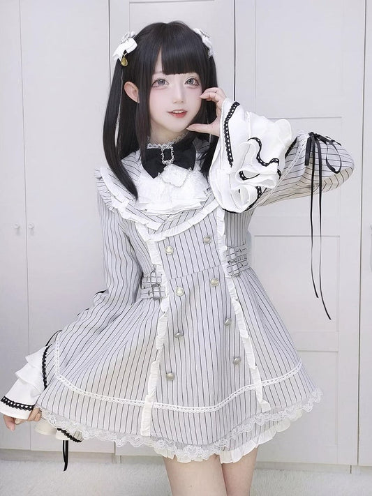 Striped Kei Dress Light + Sleeves Bell Gray Jirai Matching Set Shorts