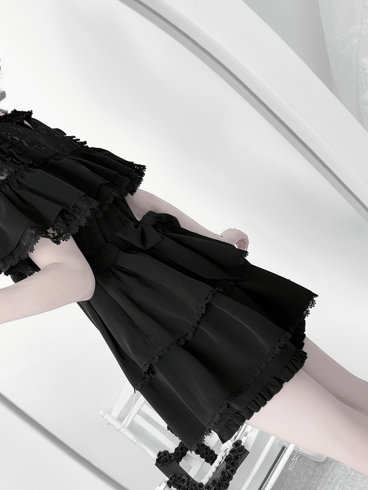 White - Shorts Gothic Black Landmine in Sailor Sleeve Lace-Threaded Bell Set Top Matching Style