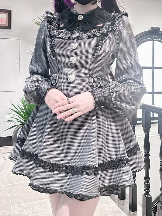 Mini Puff Detachable Collar Gray with Houndstooth Set Kei - Matching Jirai Dress Shorts Dark