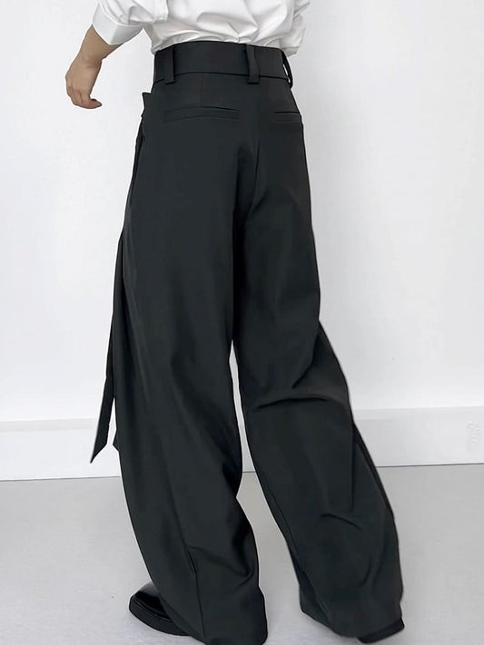 Cuffs Unisex with Pants - Waist Gray Wide-leg Elastic Slit Decorative Buckle Ouji