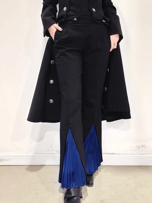 Lolita ) + Cuffs Pants Blue ( Dark Pleated Ouji Detachable Black with Foldover Red High Waist