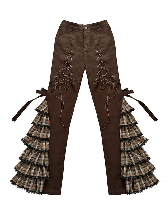 Brown - Pastel Lace-up Pants Details Punk