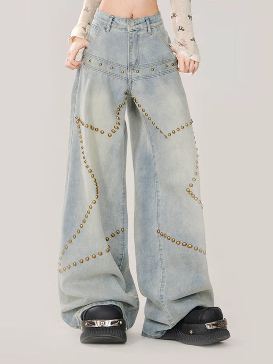 Big Wide Denim Pants Heart Loose