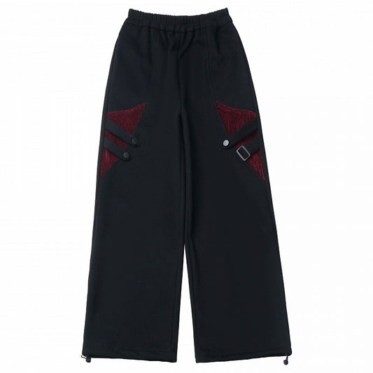 Lace Trim Wide-leg Cut Blokettecore Pants