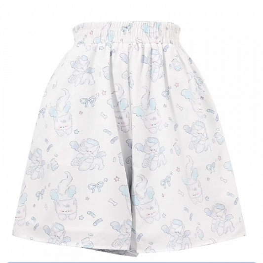 Bubble Shorts Waist Print Beige Elastic Allover Kitty