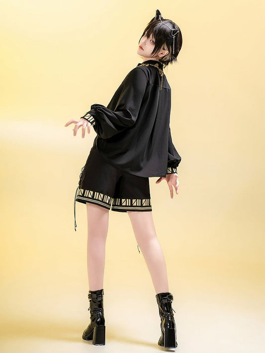 Embroidery Black Style Ouji Shorts Straight-leg Egyptian Lolita
