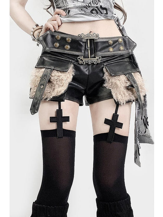 Shorts Black Pockets Glamorous Decorated Shaggy Bittersweet PU