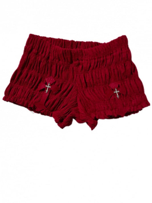 Gothic Red Crosses Low Waist Ruched Mini Shorts