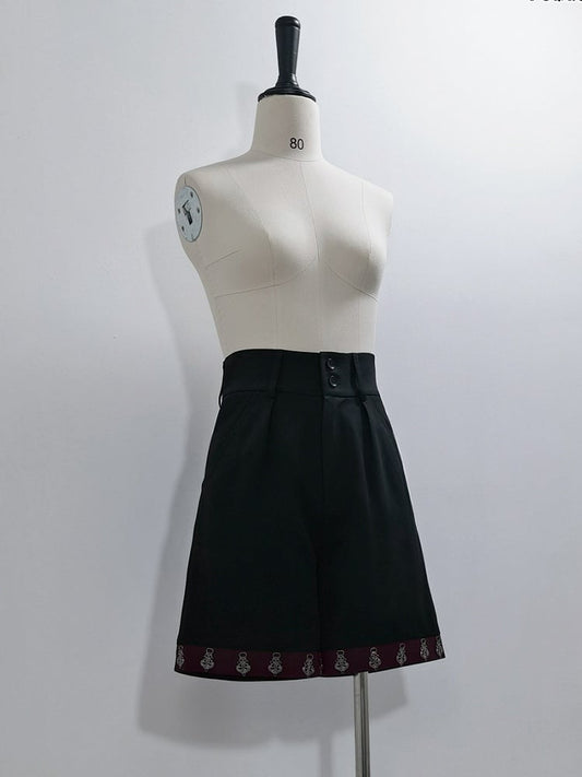 Black Ouji Lolita Red Cuffs Straight-leg Shorts