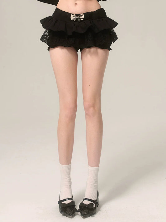 Romantic Design Bow Lace Black Skirt Shorts