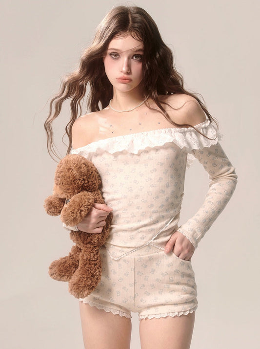 Milky Top Girly Shorts + Apricot Lace