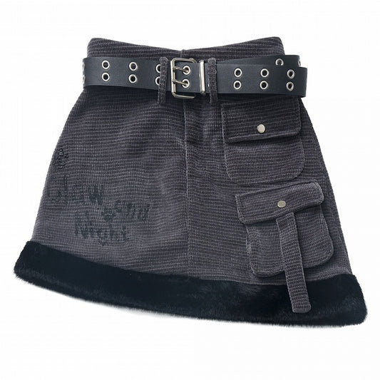 Gray Cargo Plush Detail Skirt Dark with Asymmetrical and Hem Pockets