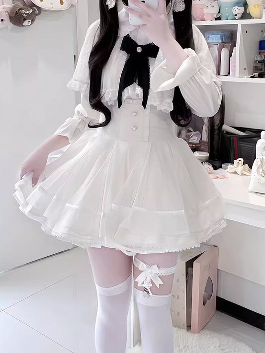 Kei Heart Long with White Short Skirt Buttons - / Tiered High-Waist Jirai Version