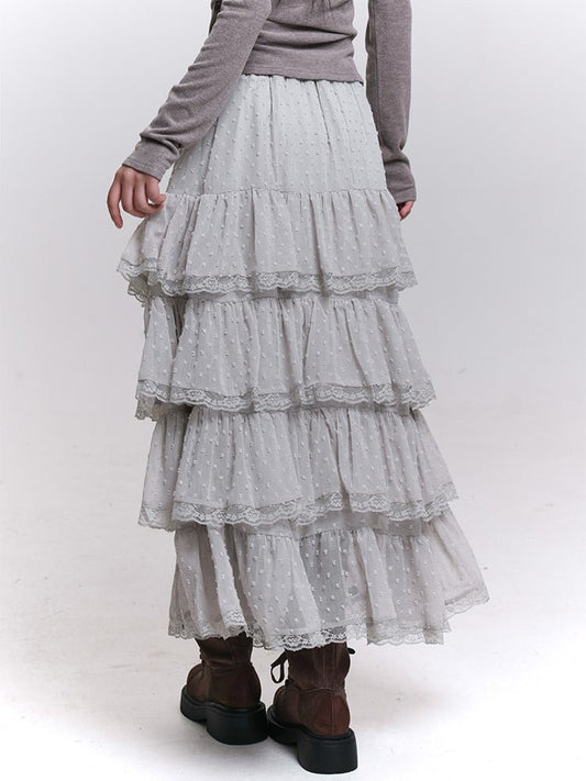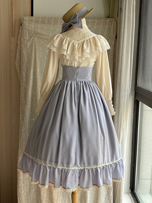 Light Gray Boned High Waist Elegant Classic Lolita Skirt with Lace Trim
