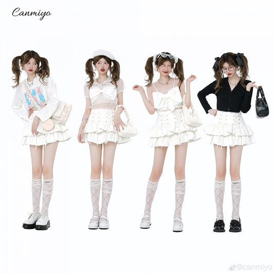 Creamy Scallop Lolita White Skirt Trim Embroidered Princess Dress Tiered