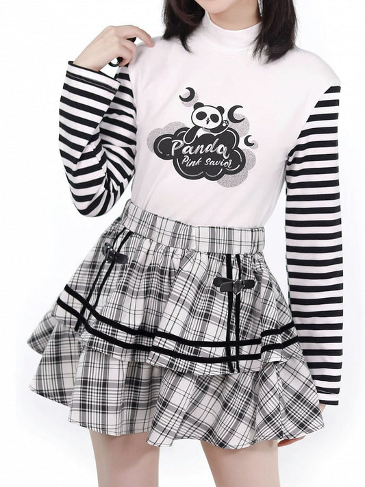 Tiered Pattern with Plaid Buckles Mini Heart Ruffles Skirt