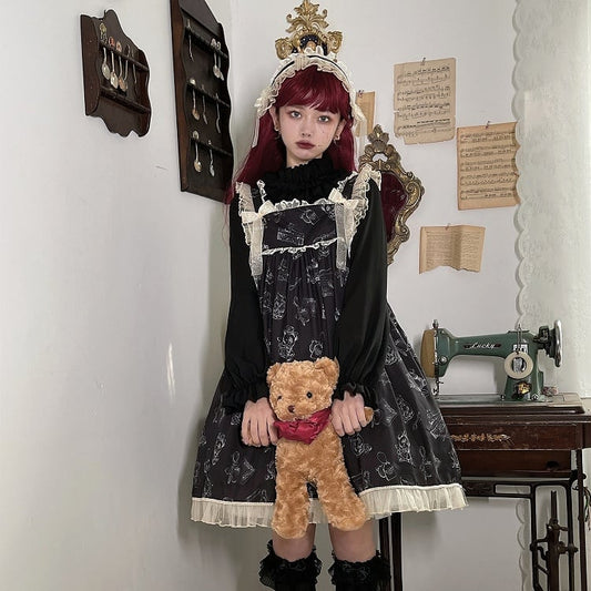 Skirt and Trim Jumper Pleated Ruffle Lolita Black Summer