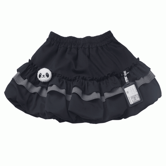 Elastic Plush Panda Bubble Skirt Waist with Card Black Holder
