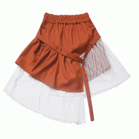 Hem Skirt Orange Elastic Waist Lace Patchwork Asymmetrical