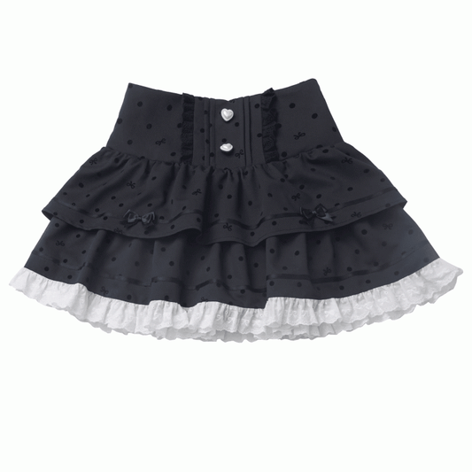 Polka-dot Tiered Skirt Lace White Trim Black