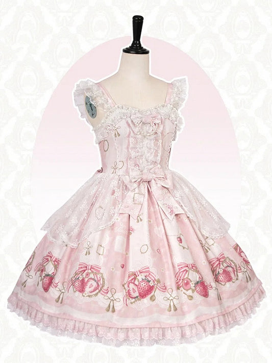 Print Sweet Skirt Strawberry Pink Jumper Lolita