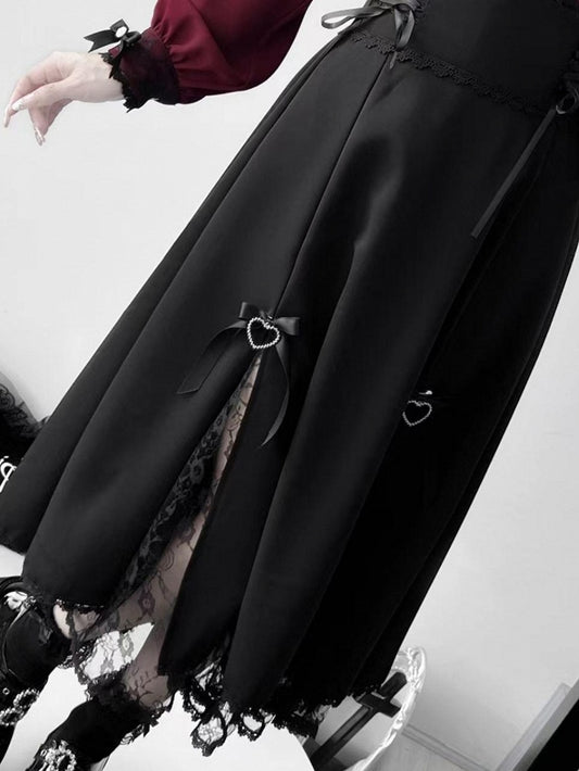 Trim Design Kei Skirt Jirai Black Lace-up Details Lace Slit Side