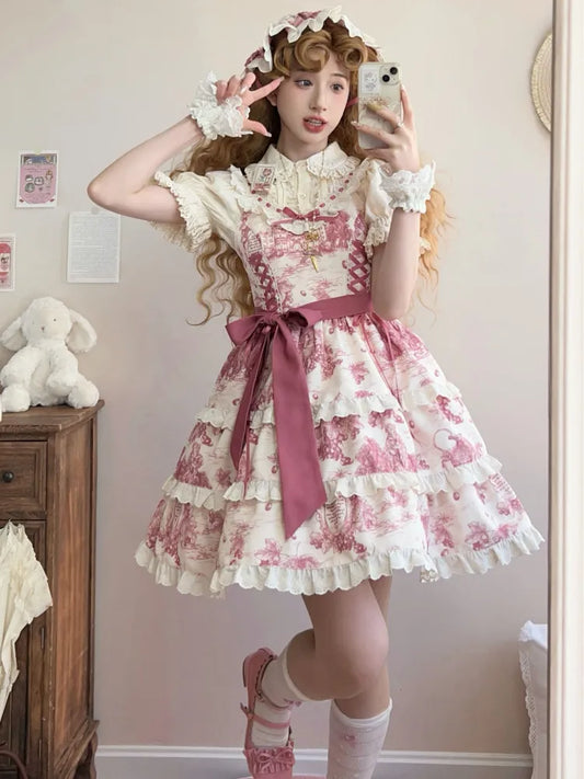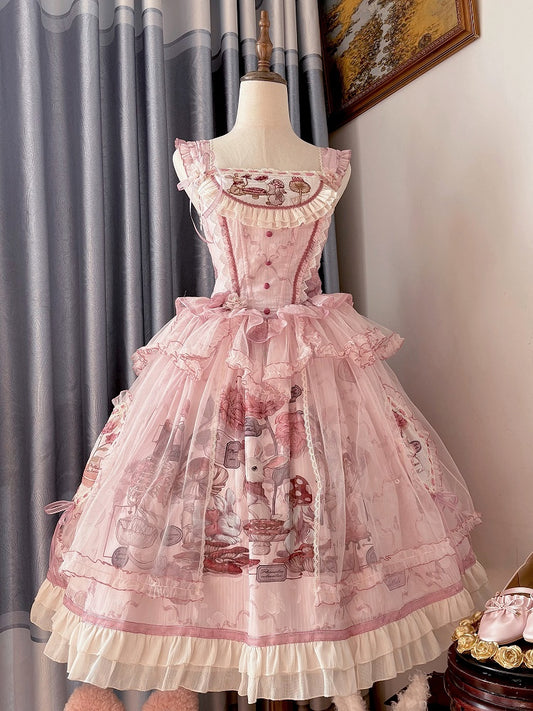 Pink Bunny Basque Waist Mushroom Skirt Princess and Jumper Lolita Print