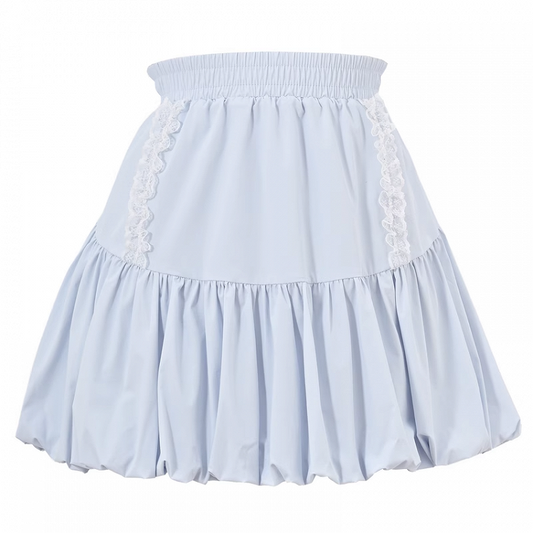 Light Blue Elastic Waist Sweet Bubble Skirt