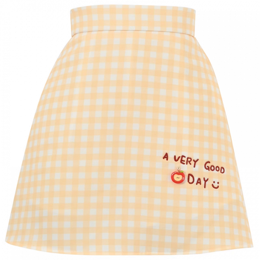 White High Waist Letter Print Yellow and Plaid Skirt Sweet