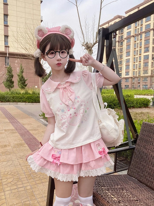Lolita Detachable Bead Bows Pink Dress and Sweet Skirt Details Tiered