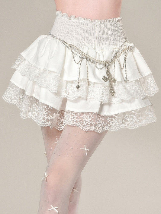 Ruffle Skirt Waist Lolita Cascading High White High-low Gothic