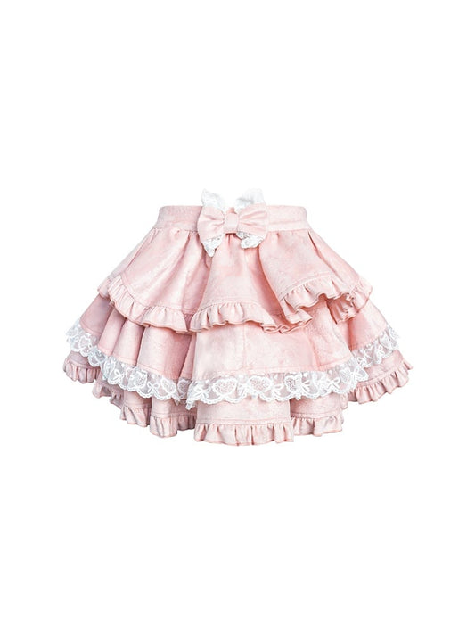Kei Skirt: Pattern Tiered Waist with Dot Polka Heart High Jirai Dark Sweetness