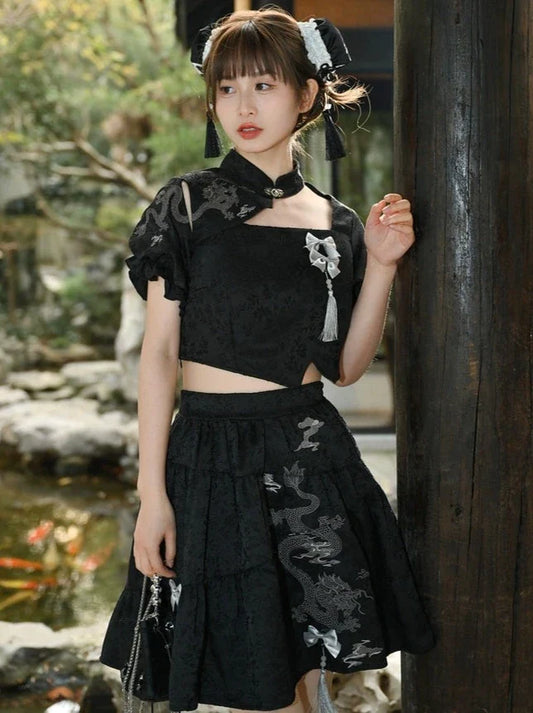 Red Pleated Bodice Black Gothic Lolita Jumper Skirt