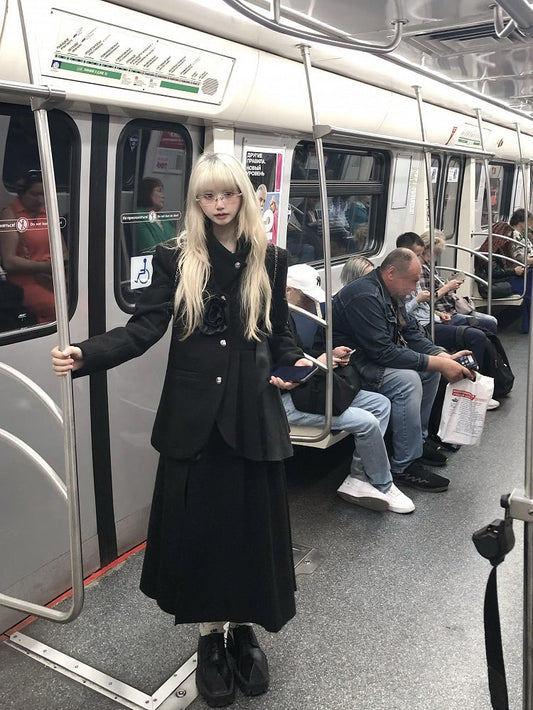 Elegant Thigh-High with and Slit Rose Black Length Ankle Skirt Accent