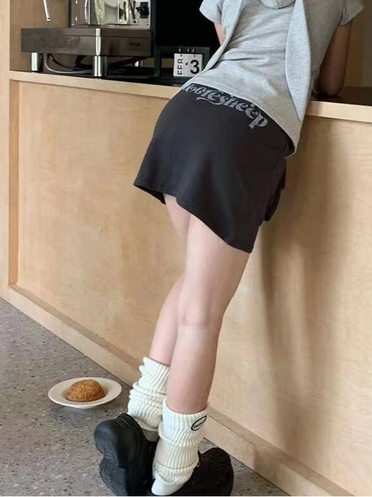 and Mini with PU Sweatpants Attached Black Thigh-High Skirt Slit