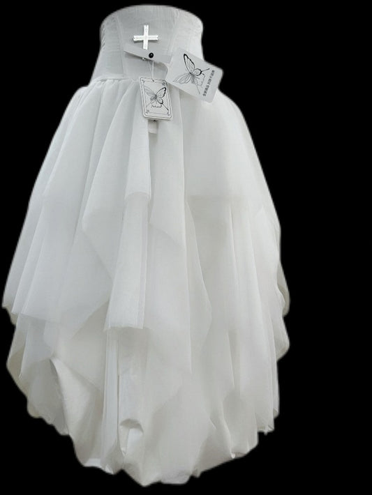 Bubble and Accent Length Tea Back Lace-Up White/Black Cross Tiered Skirt Metal with