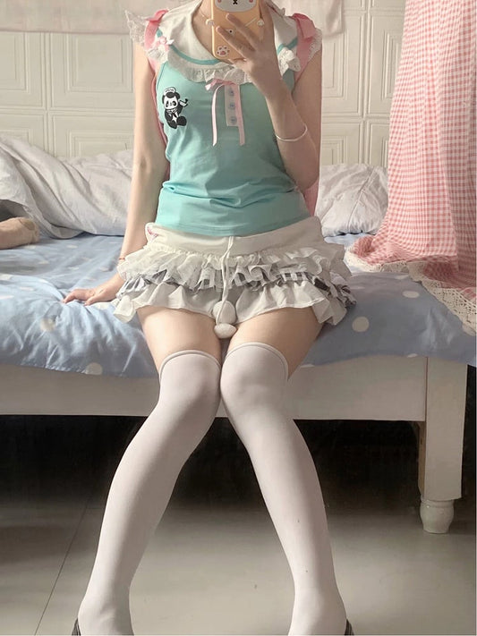 and Paw with Lace Cat Trim White Patches Skirt Tiered