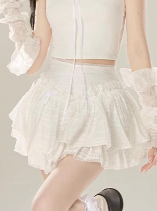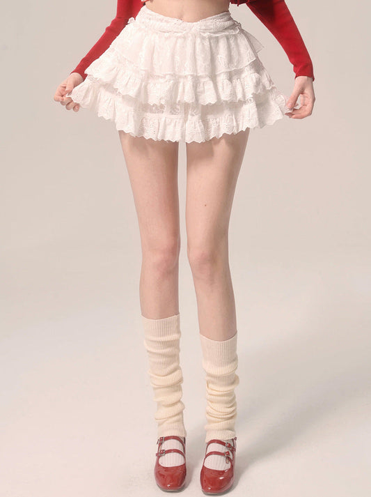 Cake Pink Style Lace A-Line Skirt Shorts White Part